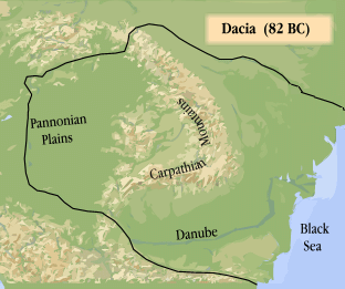 Dacia era în antichitate țara locuită de geto-daci, care erau împărțiți într-un număr mai mare de state și ocupau un teritoriu cuprins între: râul Tisa (vest), râul Nistru și Marea Neagră (est), Dunăre (sud) și Carpații Păduroși (nord). În anumite părți chiar depășeau aceste hotare: spre est peste Nistru, „înaintând până spre Bug„, iar spre vest, „ajunseră până la Dunărea panonică”.[1]