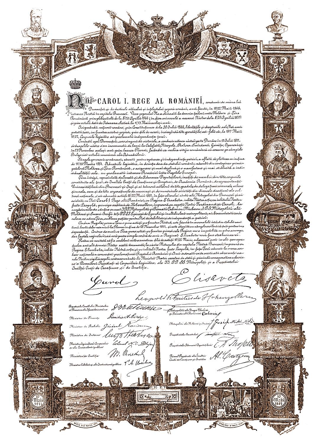 Pe 10 mai 1881, pe Dealul Mitropoliei, are loc ceremonia de încoronare a lui Carol I şi a soţiei sale, Elisabeta, ca suverani ai României. Preşedinţii celor două Camere au înmânat suveranilor coroanele din oţelul unui tun turcesc capturat la Plevna de armata română sub comanda lui Carol. În cuvântul de mulţumire, regele a afirmat că primeşte coroana „ca un simbol al independenţei şi al puterii României”. Cum, după moartea fiicei lor Maria, cuplul regal nu a mai avut copii, nu exista un succesor clar determinat la tron. Pentru a asigura stabilitatea şi continuarea dinastiei de Hohenzollern-Sigmaringen s-a reglementat această problemă. Articolul 83 din Constituţia României prevedea ca succesiunea tronului să i se încredinţeze coborâtorilor pe linie bărbătească începând de la cel mai în vârstă dintre fraţii săi sau coborâtorilor acestora. Atât principele Leopold, fratele lui Carol I, cât şi fiul cel mare al acestuia au refuzat tronul. Astfel, succesiunea i-a revenit principelui Ferdinand, cel de-al doilea fiu al principelui Leopold şi nepot de frate al regelui Carol I. Noua linie succesorală a fost statuată prin „Pactul de familie” din 18 mai 1881.
