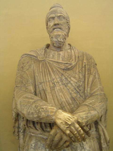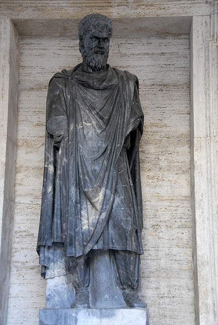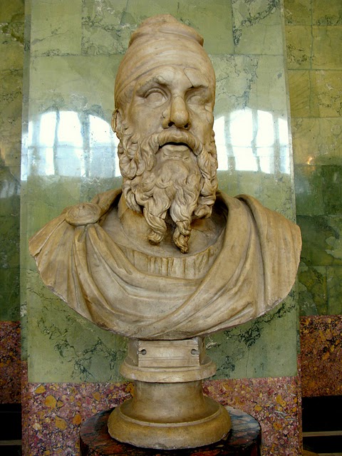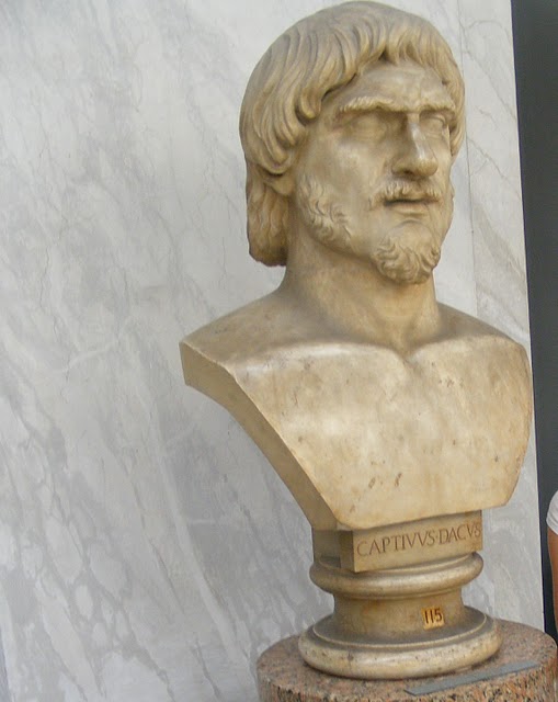 Intre doua statui de matroane romane, Rutilia, fiica lui Lucius, si Rutilia, fiica lui Publius, se afla un bust colosal, sapat in marmura frigiana: cel mai mare bust din intreaga galerie Chiaramonti a Vaticanului, care numara peste 800 de sculpturi greco-romane, reprezinta un dac. Cu palma dreapta asezata peste incheietura mainii stangi, cu mantia despicata la coate, fruntea usor incruntata si gura intredeschisa, priveste inainte, drept si linistit: dupa aproape doua mii de ani, el inca priveste spre Dacia.