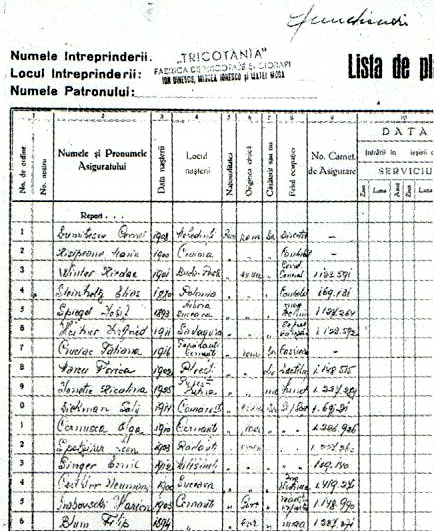 Printre mărturiile pe care Florea Neagu le deține și șe păstrează cu sfințenie în arhiva sa, pentru a justifica cele de mai sus, se află o serie de ștate de plată ale fabricii Tricotania, pe care apare menționată, la rubrica „originea etnică”, în numeroase rânduri sintagma „evreu”, iar la rubrica „taxe militare evrei” apar nominalizate sumele pe care ssalariații evrei cu vârsta „încorporabilă” le achitau pentru a nu intra sub arme.