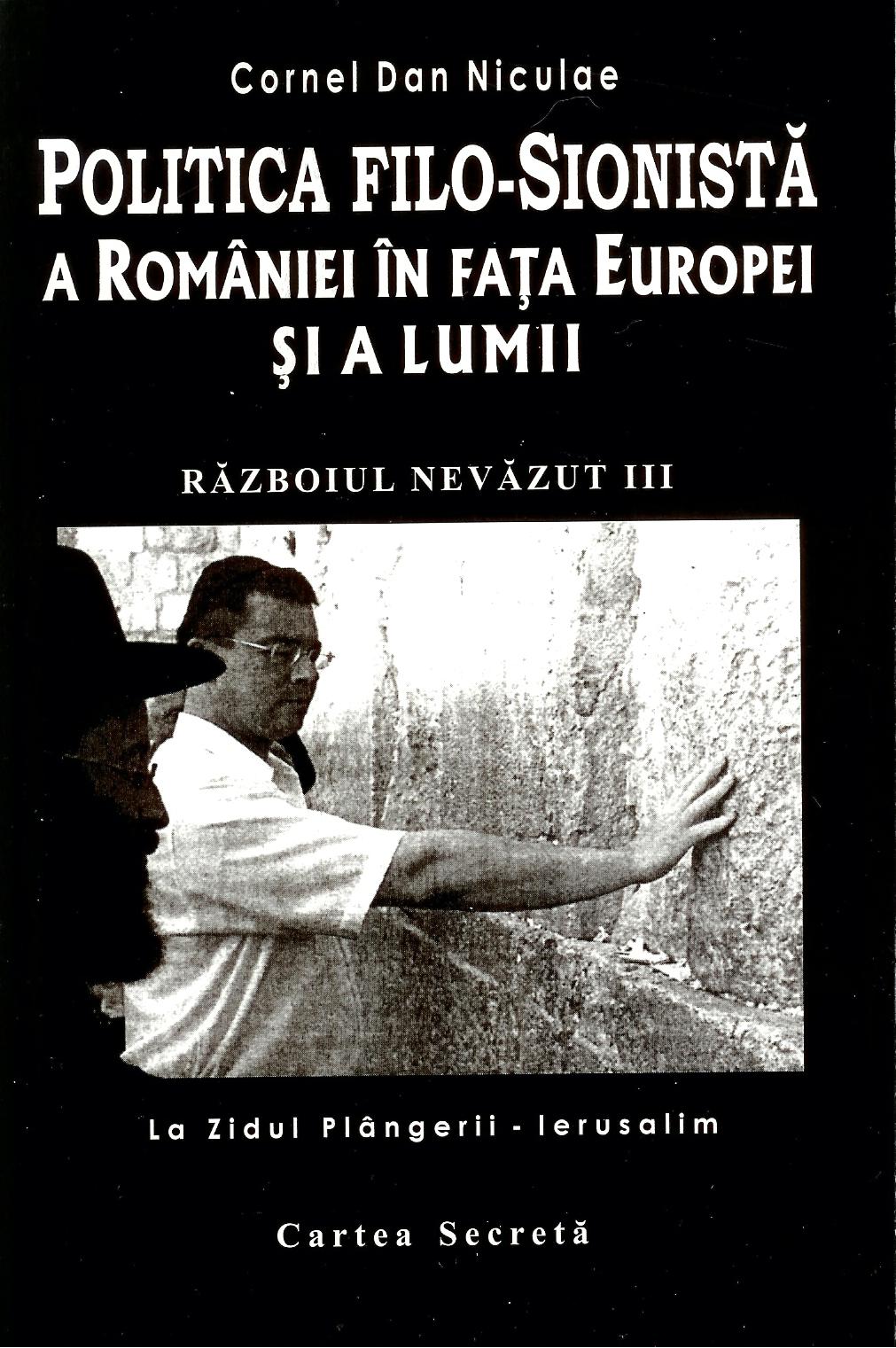 [3] De altfel, al treilea volum al cărţii lui Cornel Dan Niculae -„Politica Filo-Sionistă a României în faţa Europei şi a lumii”, are ilustrată pe copertă fotografia ministrului Ungureanu cu mâinile pe Zidul Plângerii şi cu chipa pe cap. „Ofiţer de-al nostru sau de-al lor?”