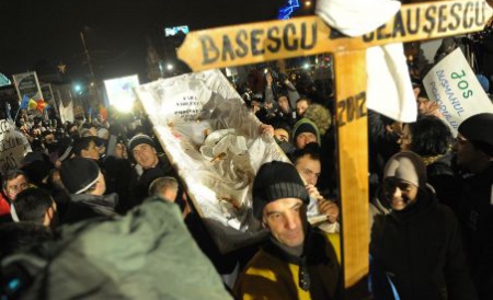 Tranziţia de la o dictatură la altă dictatură, disperarea, sărăcia în care trăieşte populaţia României de 22 de ani, sentimentul de timorare sub care funcţionează sănătatea şi învăţămîntul, neîncrederea în instituţiile statului cotropite de politic, populate de corupţi şi de rudele lor, au scos românii în stradă zi de zi, de o săptămînă încoace. La -3° de afară, la kilometrul 0 al României şi în alte 60 de oraşe din ţară au avut loc cele mai ample manifestaţii de stradă de cînd a venit preşedintele la putere. Primele trei zile au fost presărate cu adevărate lupte între manifestanţi şi jandarmeria care a acţionat cu dublă măsură, făcînd uz de gaze lacrimogene şi de instrumentele din dotare. Zeci de protestatari nevinovaţi şi jurnalişti culturali, agresaţi şi loviţi mîrlăneşte au fost urcaţi cu forţa în dubă, nu în salvare pentru îngrijiri. „Băgaţi saitul de cultură în dubă! Imediat!”. Potrivit art. 35 din Legea jandarmeriei (Legea nr. 550/2004), jandarmii nu au dreptul să conducă la secţia de poliţie sau la unitatea de jandarmi persoane despre care nu pot dovedi că au săvârşit fapte contrare legii, prin care au provocat dezordine/tulburări. Între militanţi s-au infiltrat jandarmi în civil care au aruncat cu bucăţi smulse din asfalt şi au incendiat maşini scoase din uz. Ministrul de interne a dat ordin ca manifestanţii să fie bătuţi. După titlul unui mai vechi editorial pe care îl semnez în Agero, preluat de saitul Revoluţiei, în piaţa Universităţii s-a strigat „daţi-mi ţara înapoi”, semn că protestele în nume propriu de-a lungul cîtorva ani, au fost bine receptate de către cititorii din ţară. Scandările au fost pe măsura limbajului folosit de preşedinte şi de guvernanţi. Cîţiva protestatari au venit în Piaţa Universităţii cu o cruce şi un coşciug pe care scria: „Vrem să înmormântăm guvernul român şi să facem veşnica pomenire a celor care au distrus ţara”.